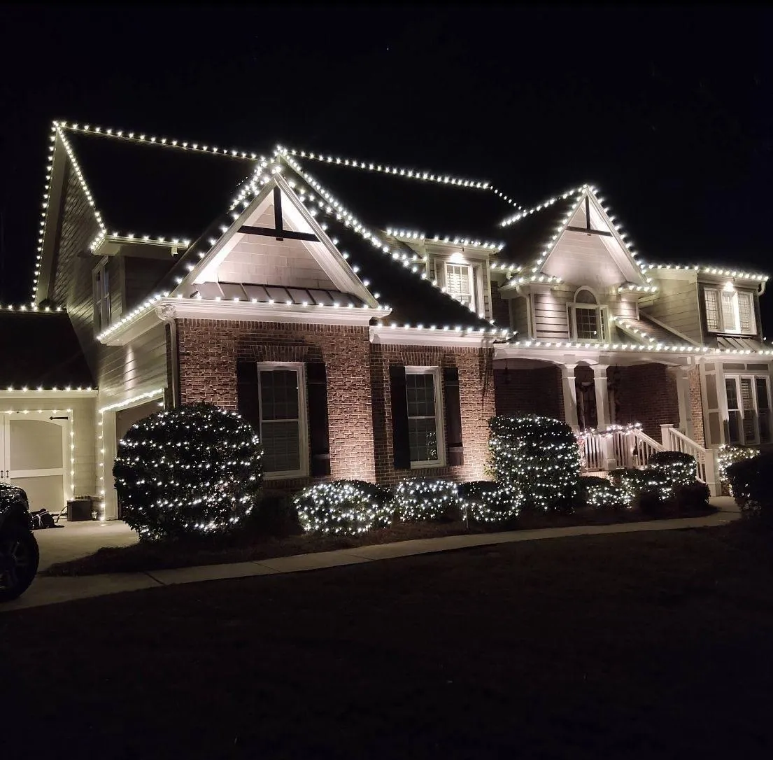 Custom Design & Installation: We’ll create a lighting layout that perfectly fits your roofline, windows, and landscape.